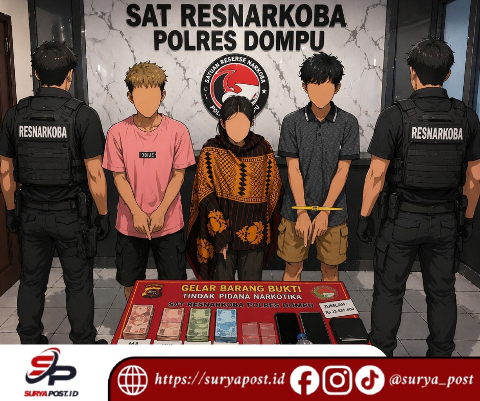 Dompu, Surya Post – Satuan Reserse Narkoba Polres Dompu kembali menunjukkan komitmennya dalam memberantas peredaran narkotika di wilayah hukum Kabupaten Dompu. Kali ini, tiga orang terduga pelaku tindak pidana narkotika jenis sabu berhasil diamankan dalam sebuah operasi di Kecamatan Kempo.